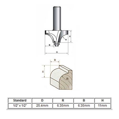 - 1.27cmカット直径、1.27cmベアリング直径。