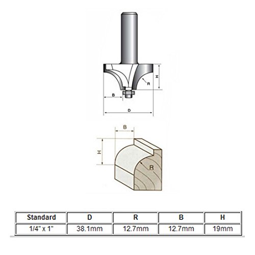 - 2.54cmカット直径,1.27cmベアリング直径。