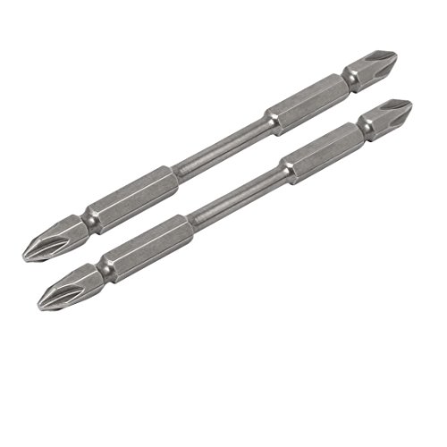 uxcell 磁気フィリップス クリュードライバー ビット PH2ダブルヘッド 1/4インチ 六角シャンク 110mm長 2本入り