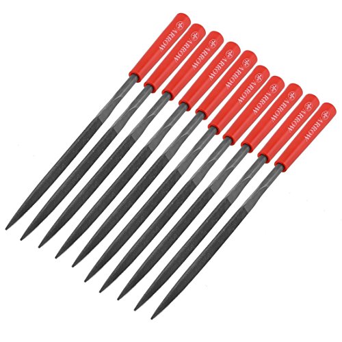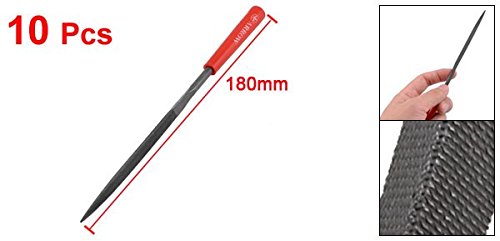 uxcell ニードルファイルセット レッド プラスチック コーティング 人工 研削加工道具 三角ファイル 5mm x 180mm 10個