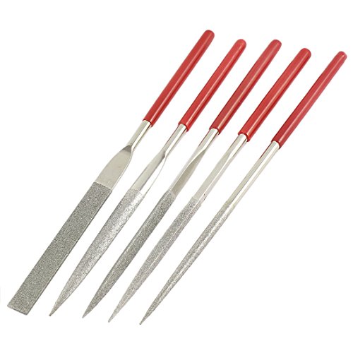 uxcell ダイヤモンドニードルファイル ダイヤモンド ラバー シルバートーン レッド 119g 5セット入り