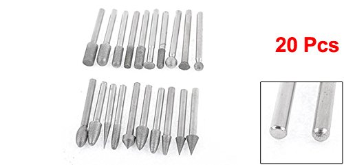 uxcell 砥石研削ビットセット ダイヤモンドビット シリンダー ツリーボールヘッド 20個 シルバートーン アルミ合金