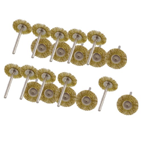 uxcell 軸付き砥石 研磨 ルーター ブラシ ホイール 20個入り T 形 黄銅色 シルバートーン メタル 鋼線 シャンク