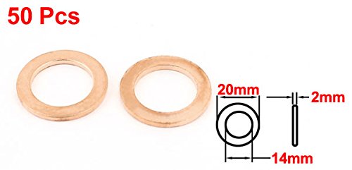 uxcell パッキン フラット 銅 クラッシュワッシャー 密封リング ガスケット 50個入り 14mmx20mmx2mm