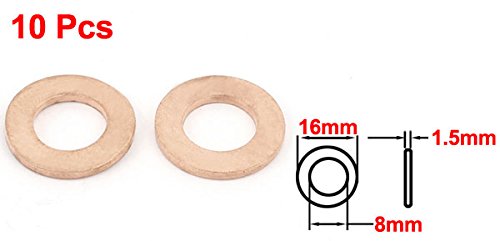 uxcell フラット 銅 クラッシュワッシャー 密封リング ガスケット 10個入り 8mmx16mmx1.5mm