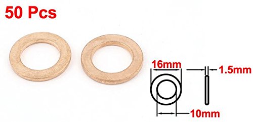 uxcell パッキン カッパーワッシャー 10m内径 16mm外径 1.5mm厚さ フラット リング ガスケット 50 個