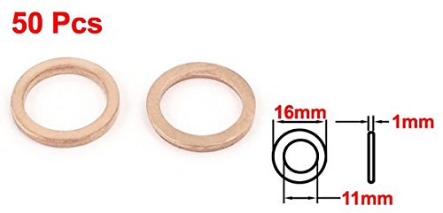 uxcell カッパーワッシャー 11mm内径 1mm厚さ フラット リング ガスケット 50個
