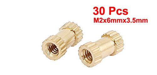 uxcell ローレットナット ローレットインサート組み込みナッツ ゴールドトーン 真鍮 30個 M2x6mmx3.5mmメスのスレッド
