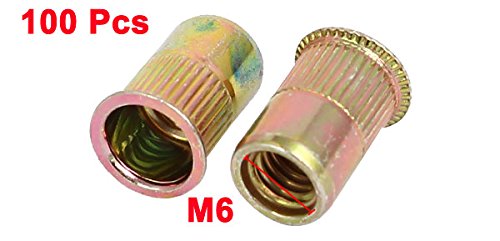 uxcell リベットナット 挿入ナットセット ブロンズトーン 亜鉛めっき 炭素鋼 M6のスレッド 14mmのロング 100個