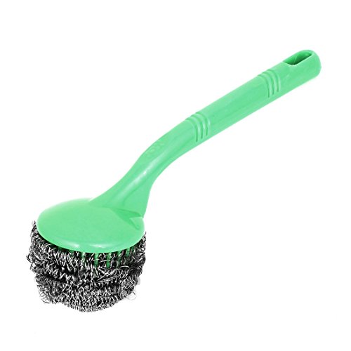 uxcell スチールクリーニングブラシ ステンレス鋼線ブラシ グリーン シルバートーン プラスチック ステンレススチール 22cm