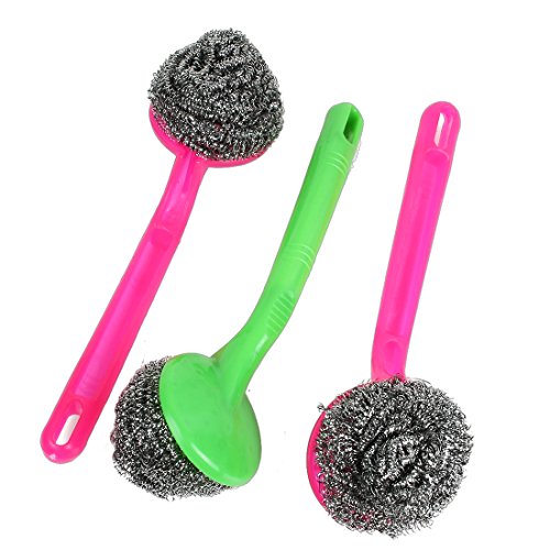 uxcell クリーニングブラシ スパイラル鋼線クリーニングブラシ 3個入り フクシア グリーン プラスチック スチール 22x6.5x5cm