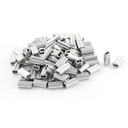 uxcell ワイヤロープ スリーブ アルミ製スリーブ クリップ シルバートーン 8状 ハードウェア 100個入