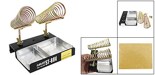 uxcell 半田アイアンスタンド 金属素材 クリーニングスポンジ ST-88V シルバートーン