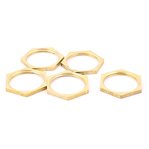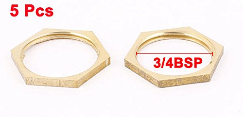 uxcell 六角ナット・パイプ ロック・ナット 真鍮 真鍮製トーン 3/4BSPメスねじ 5個入り