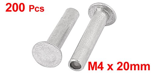 uxcell 半管リベット アルミニウム素材 M4 x 20mm フラットヘッド シルバートーン 00枚入り
