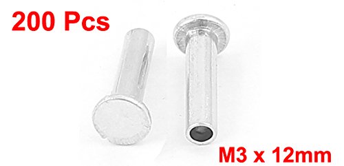 uxcell 半管状リベット 200個入り M3 x 12mm アルミ フラット頭 シルバートーン