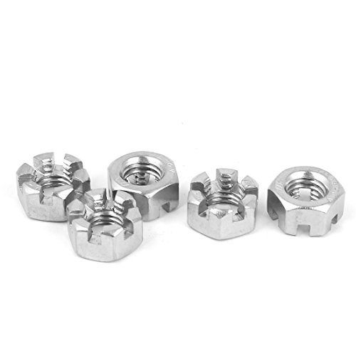 uxcell 六角スロットナット 304 ステンレス鋼製シルバートーン M10 x 1.5mm 5個入り
