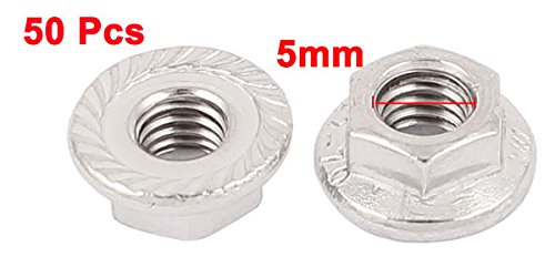 Uxcell 六角フランジロックナット ステンレス鋼 151g 5mm シルバートーン 8mm