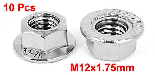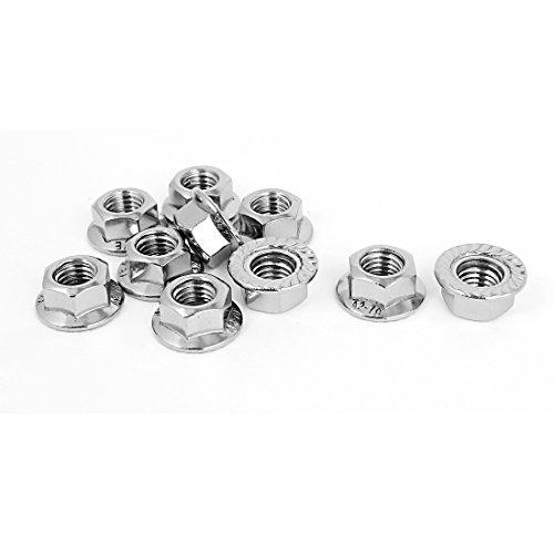 uxcell 六角フランジナット 304 ステンレス鋼製シルバートーン M12x1.75mm 10個入り