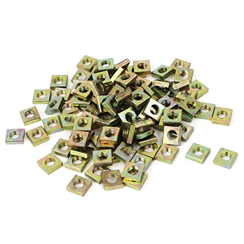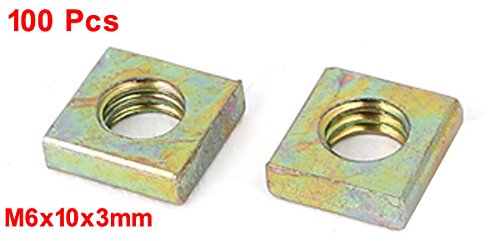 uxcell 四角ナット 機械ネジネットファスナー M6x10x3mm イエローの亜鉛メッキ 100個入り