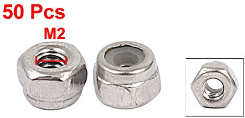 uxcell ナイロン製ロックナット 304ステンレス鋼製シルバートーン M2スレッドサイズ 50個入り