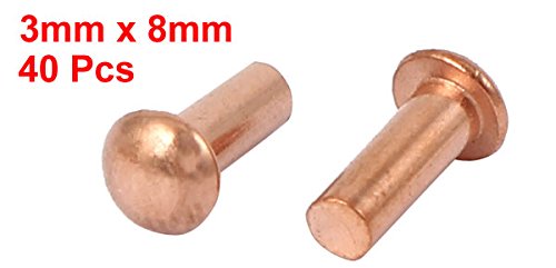 uxcell 銅ソリッドリベット 3mm x 8mm 円形ヘッド ゴールドトーン 40個入り