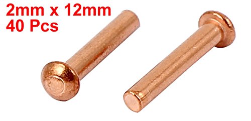 uxcell 銅ソリッドリベット 2mm x 12mm 円形ヘッド 13mmの長さ ゴールドトーン 40個入り