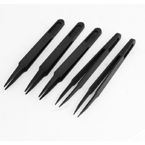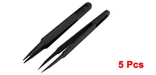 uxcell プラスチックピンセット先細 ストレートツイーザー ピンセット 金属製 プラスチック ノンスリップ 5個セット ブラック