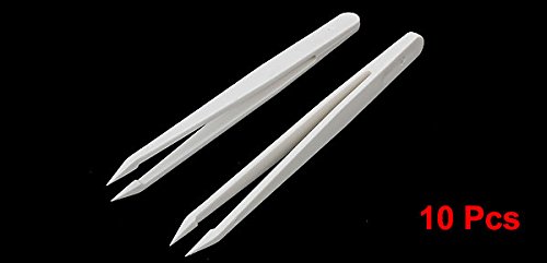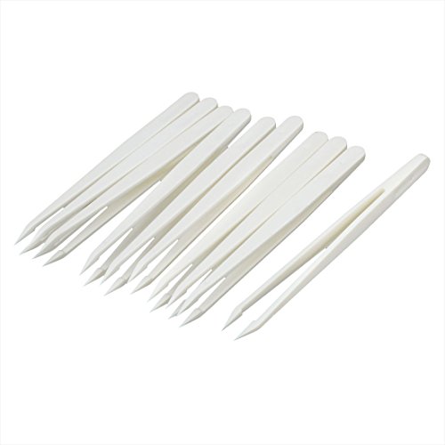 uxcell プラスチックピンセット ホワイト プラスチック 尖った先端 12 x 1cm 10枚入り