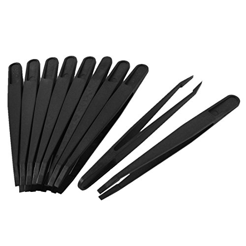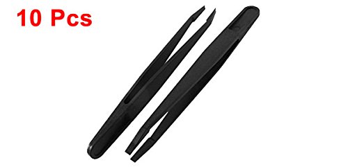 uxcell プラスチックピンセット 12 x 1cm ブラック フラットヒン 静電防止 精密 先平型 10個入り