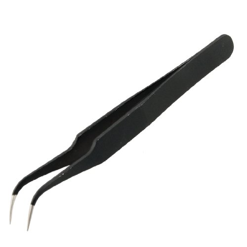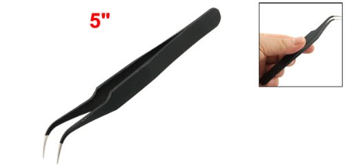 uxcell 帯電防止ピンセット ベントカーブ先 先のとがった ブラック シルバートーン 12.5cm長