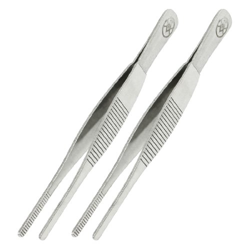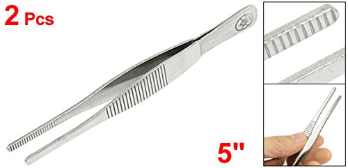 uxcell ストレートピンセット ベントフラットエッジ 長さ12.5cm ステンレス鋼 2個