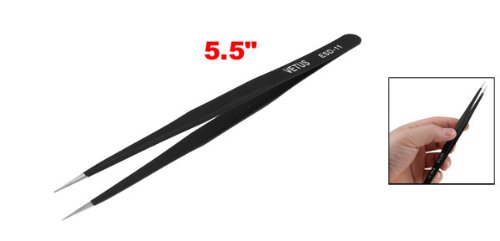 uxcell ツイザー シルバー ステンレス 静電抵抗ストレートポイントチップ 14 x 1cm