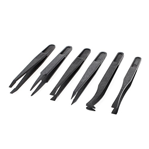 uxcell 帯電防止ピンセット プラスチック ブラック 尖ったピンセット フラットカーブ先端 フラットピンセット