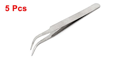 uxcell カービングファイン先端ピンセット メンテナンスツール 帯電防止 ジュエリー シルバートーン 5個入り