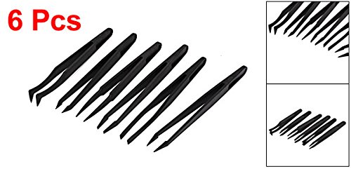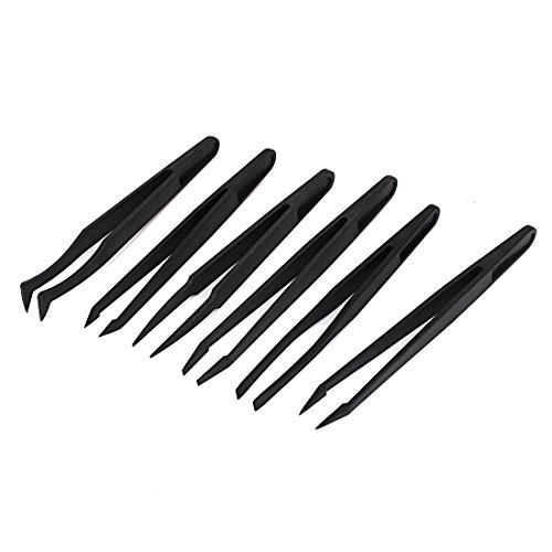 uxcell ピンセット 帯電防止 プラスチック材質 カーブヘッド フラット 6in1 ブラック