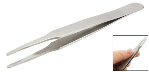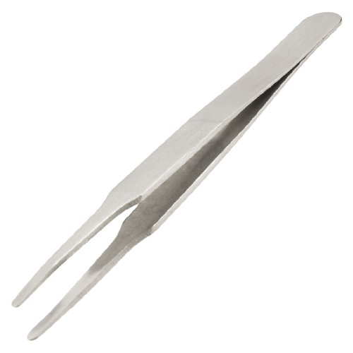 uxcell ピンセット ストレートピンセット 手動工具 シルバートーン フラットな先端 12cmの長さ
