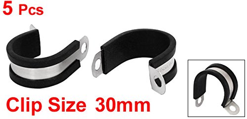 uxcell 30mm 直径 EPDMラバーライニングPクリップ ゴム 304ステンレス鋼 ケーブルマウント ホースクリップ 5個入り