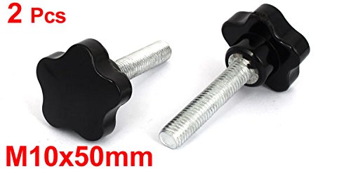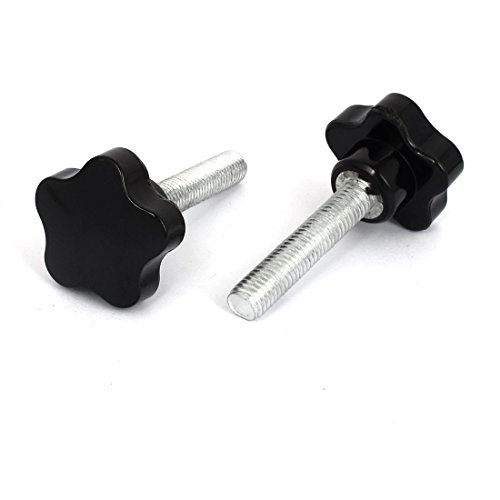 uxcell クランプノブ プラスチック 金属 ブラック シルバートーン 40mmスターヘッド 2個入り