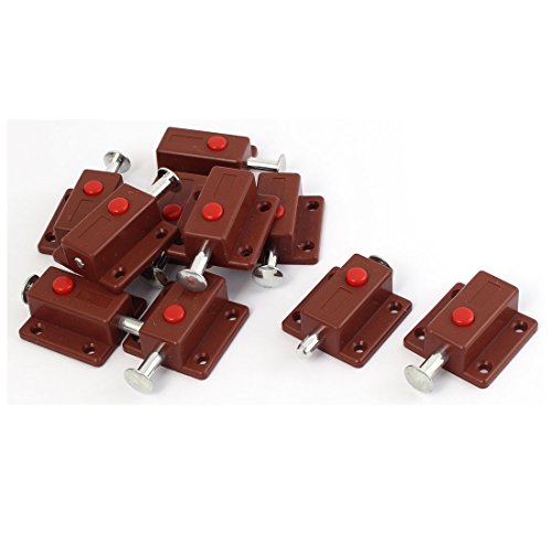 uxcell 自動バレルボルト ボタンコントロールラッチ 10個入り ブラウン シルバートーン プラスチック 金属 37×36×16mm