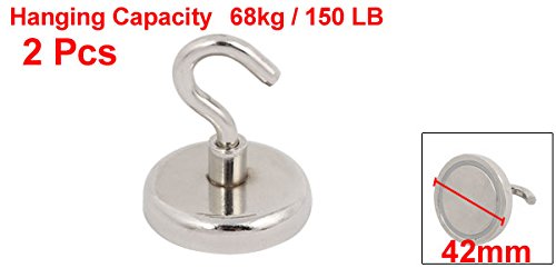 uxcell マグネットフック 強力 68kg/150 LB 42mmベース径 50mm高さ 2個入り