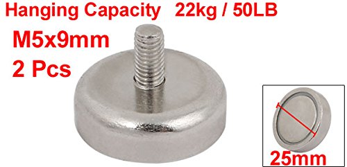 uxcell 磁石 丸型 ネオジム オスねじM5x9mm 直径25mm 22kg シルバートーン 2枚入り