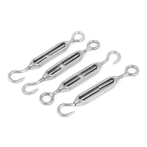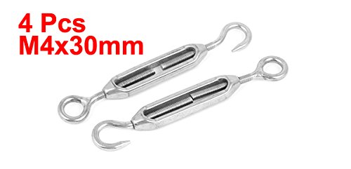 uxcell ターンバックル アイフック スレッド 調整可能 ステンレス鋼 シルバートーン M4 4個入り