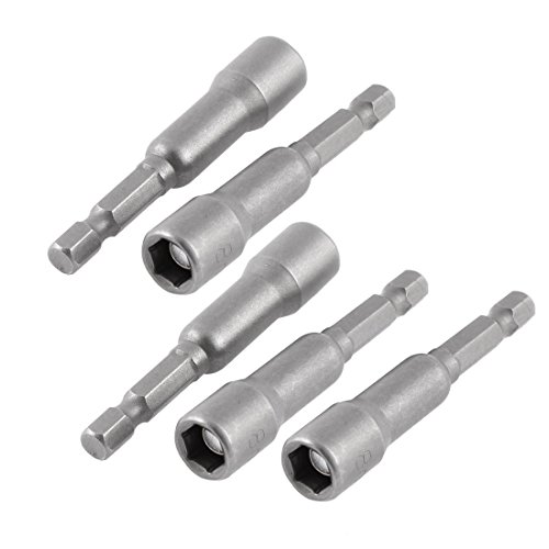 uxcell 六角ソケット ビット セッター 金属 グレー 5個入り 磁気有り ナットドライバービット