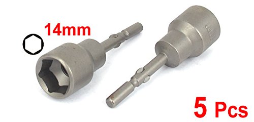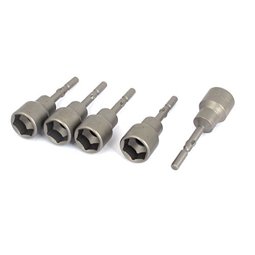 uxcell 六角ナットドライバー 金属 シルバーグレー 5個入り 丸シャンク 電動工具