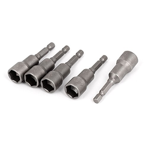 uxcell 六角ナットドライバー 金属 シルバーグレー 5個入り ハードウェアツール ナットドライバーセット