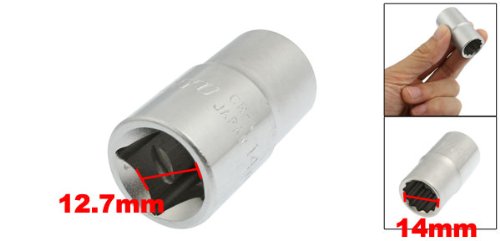 uxcell ソケットレンチ スクエア ドライバー CR-V 14mm メタリック 12角 ハードウェア ツール
