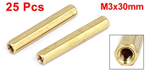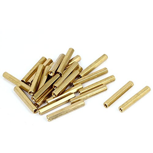 uxcell 六角スタンドオフ・スペーサ メス・スレッド 真鍮のトーン M3 x 30mm 25個入り