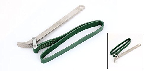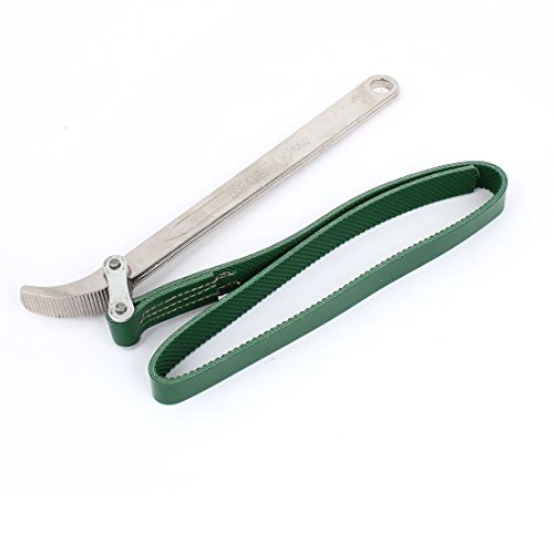 uxcell ベルトレンチ ストラップレンチ フェイクレザー メタル製 グリーン シルバートーン ベルト オイルフィルターレンチ オートカー用