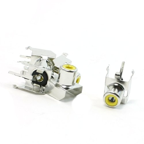 uxcell PCB RCA ソケットジャック AV プラグ 金属 プラスチック イエロー シルバートーン